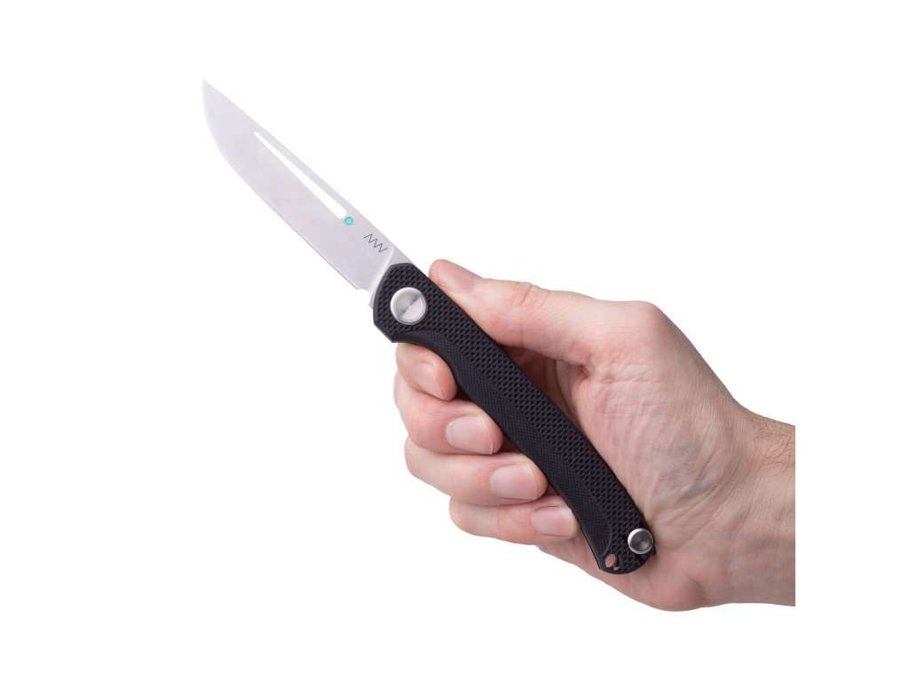Rukojeť z materiálu G10 vychází z konstrukčních prvků našich předchozích modelů, ale přichází s novým pojetím úchopu. Hrubší textura v horní části podél páteře zajišťuje jistotu držení i při náročnějším použití, zatímco jemnější spodní část přispívá k celkovému komfortu. Výkroj pro ukazováček plní nejen funkci ergonomického vedení prstu, ale zároveň působí jako menší záštita. Přestože nůž váží pouhých 68 gramů, delší střenka spolu s pečlivě tvarovanou rukojetí zajišťují pevný a sebevědomý úchop.