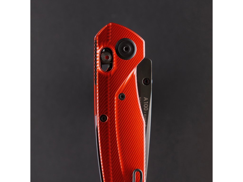 The anodized aluminum handle scales in rose gold and classic red give the knife a luxurious look that fits just as well in a suit pocket as it does on a wilderness adventure. A subtly textured surface ensures a secure grip while remaining pocket-friendly. Thanks to the strong yet lightweight aluminum, the knife has excellent balance and maintains an ideal weight for everyday use.