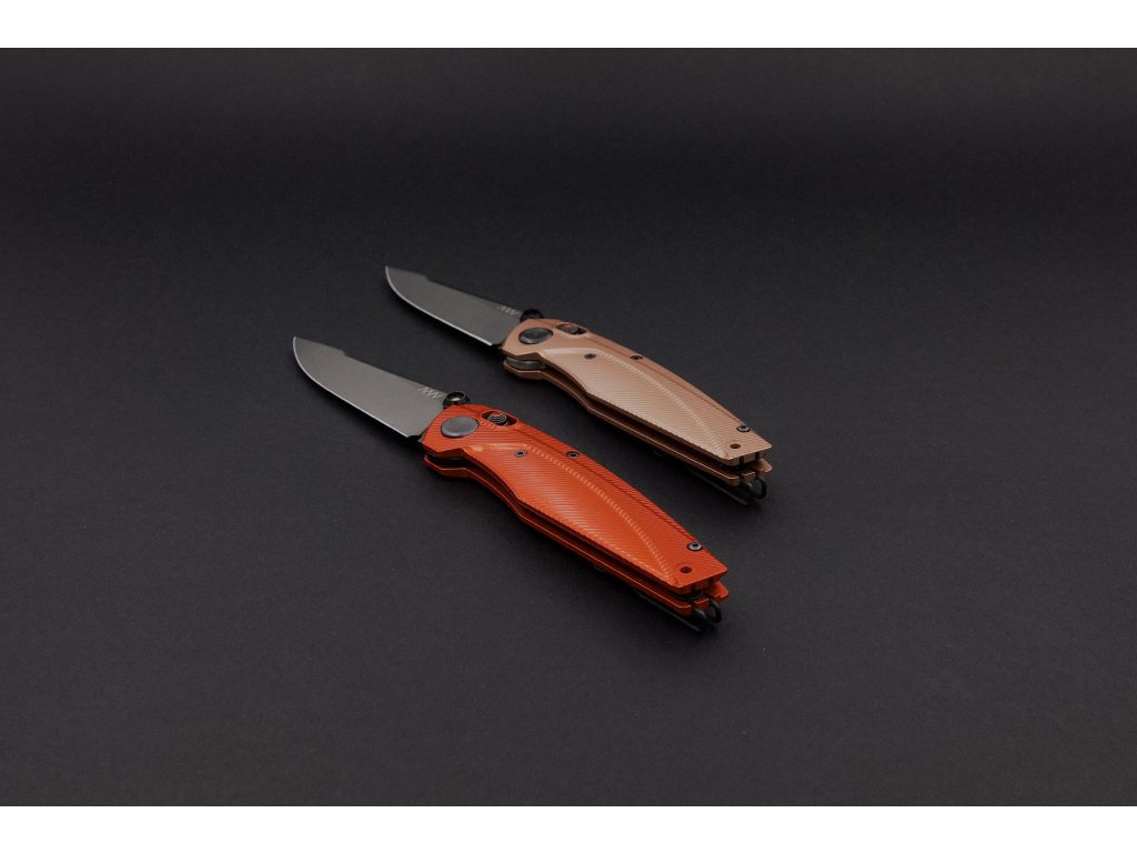 The handle is held together by a floating GRN polymer backspacer in contrasting black, which serves as both a palm support and a paracord lanyard pass-through. It also features the A-lock – our trusted, easy-to-use locking mechanism.